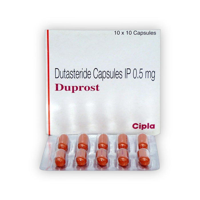 Duprost 0.5 mg Capsule is exclusively prescribed for males to treat benign prostatic hyperplasia (prostate enlargement) symptoms such as uncomfortable urination or urinary urgency. This medication should only be taken by men. Women and children should avoid handling this medication since there is a risk of absorption via the skin. This drug is not advised for use in children under the age of 18 because clinical safety and efficacy have not been proven.